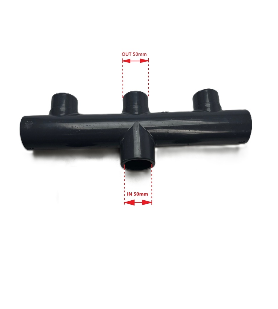 Trojcestné potrubie stredové s priemerom 50mm. Spojenie lepením.